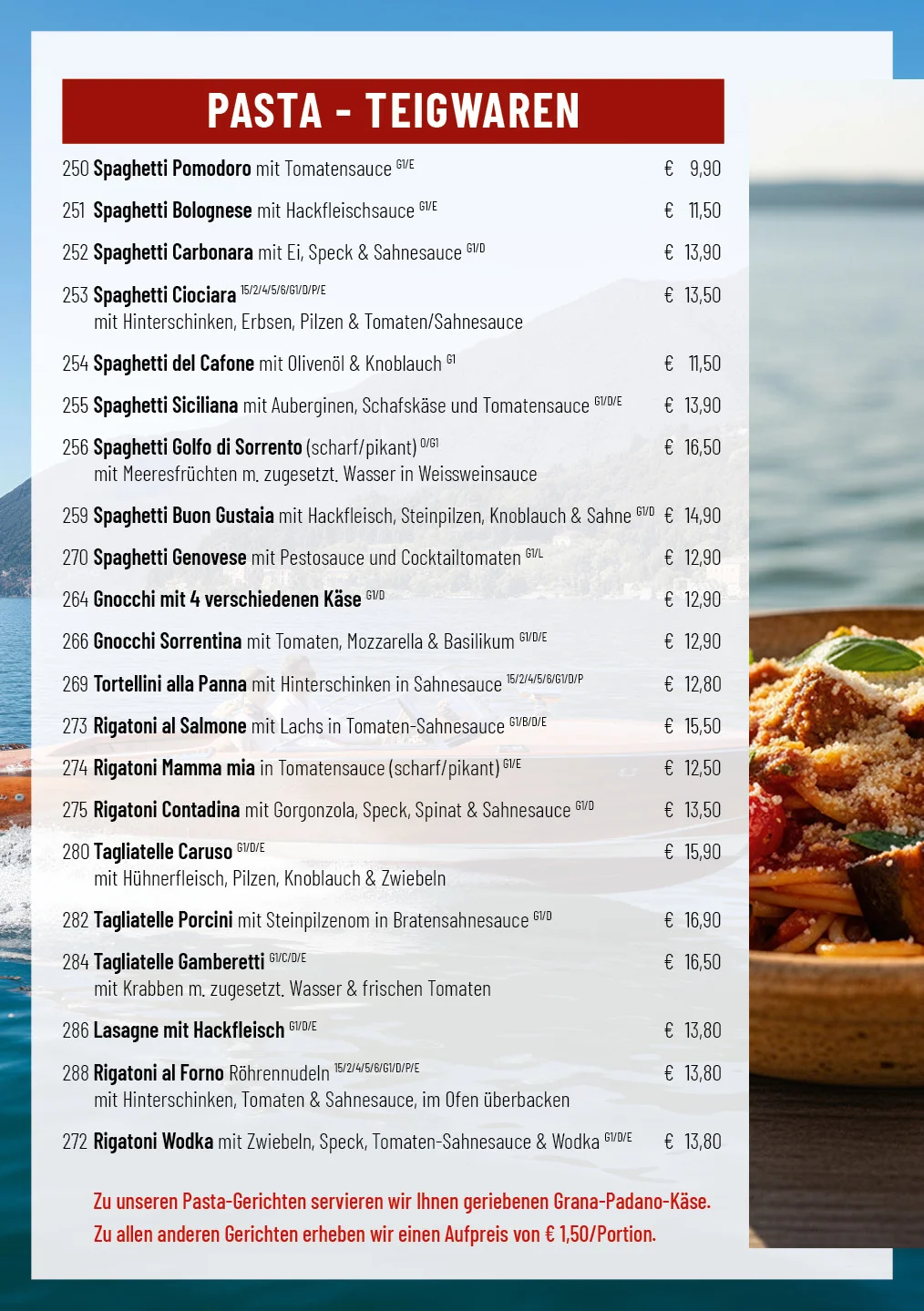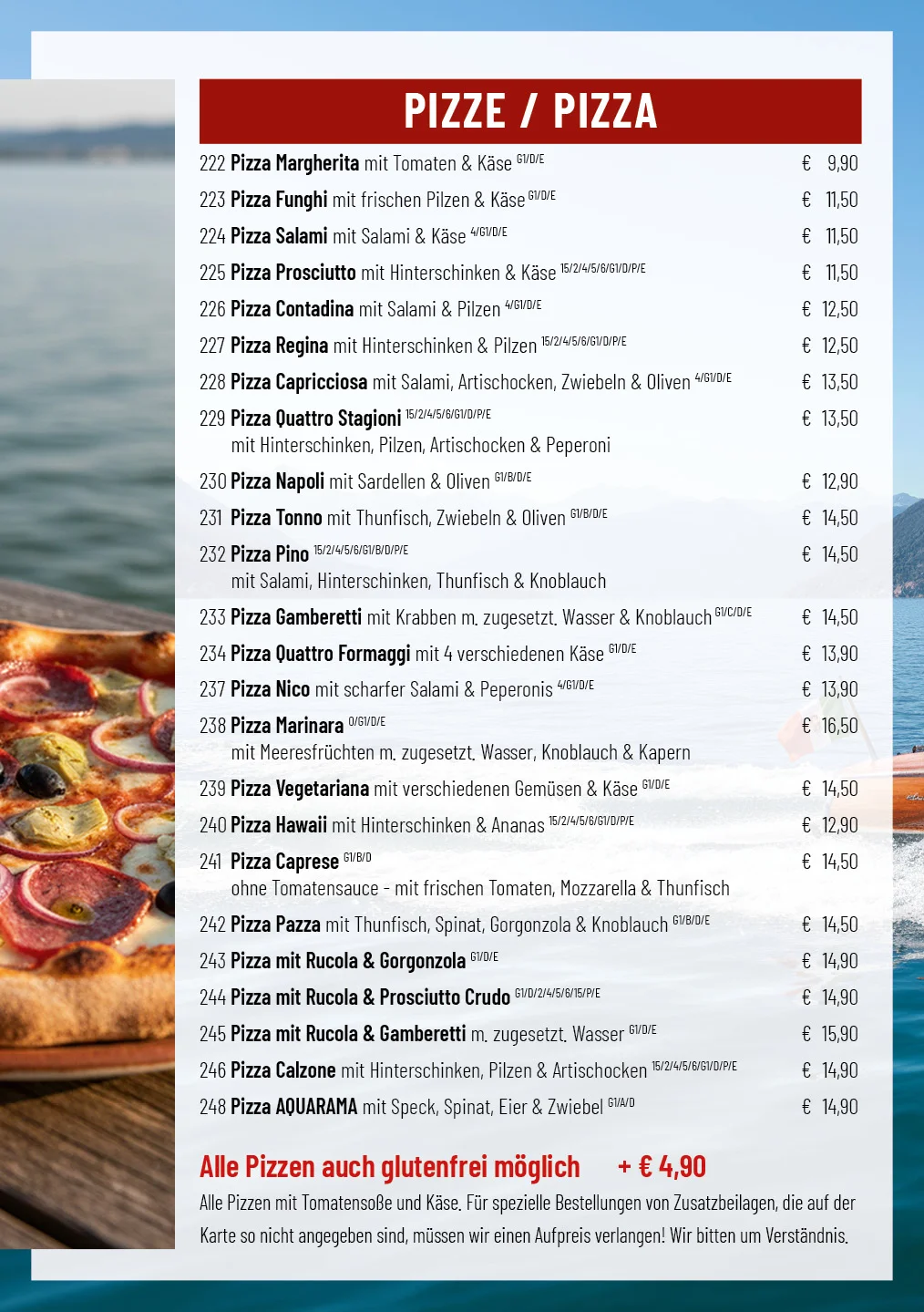 Die Mitnehmenkarte im Ristorante Pizzeria Aquarama